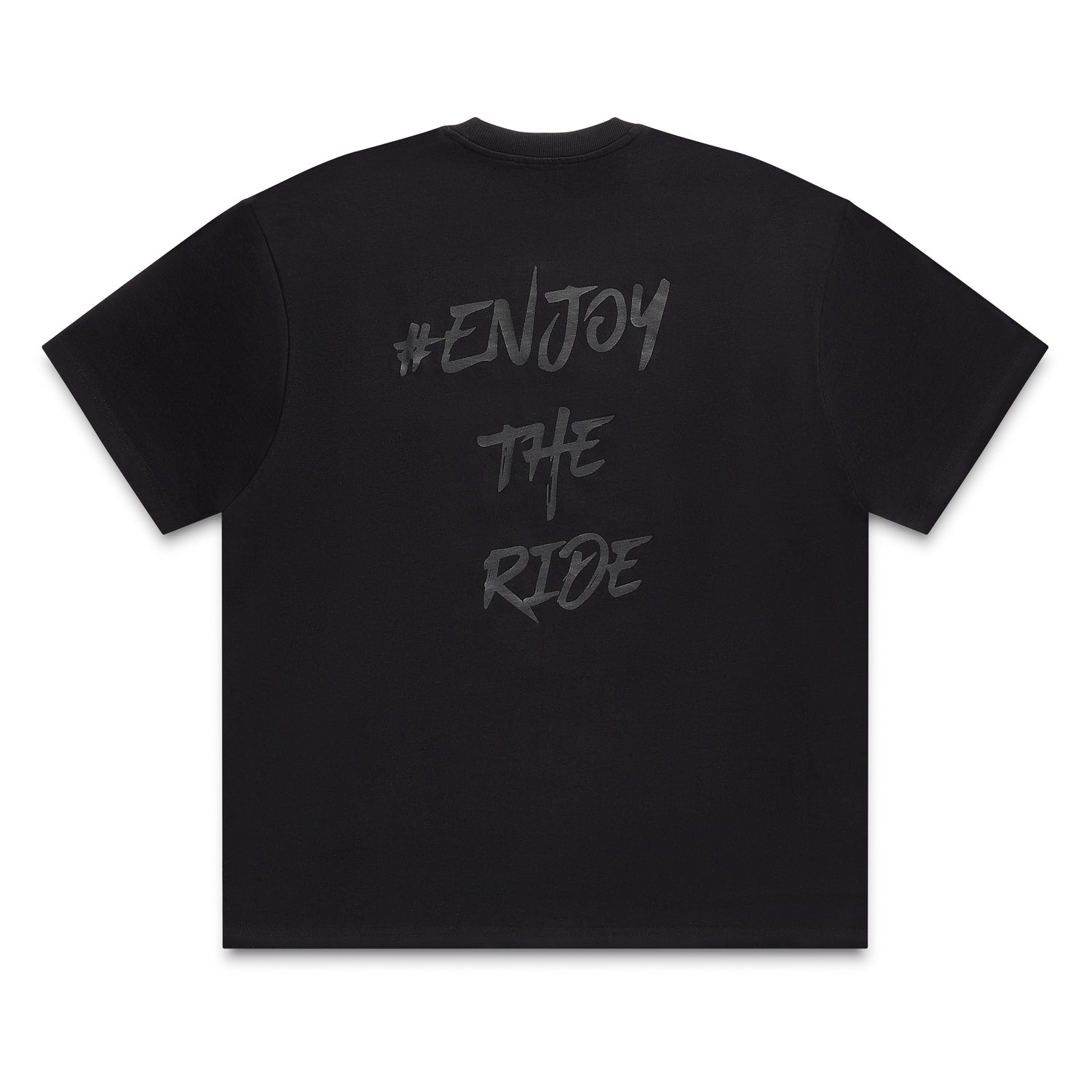 #EnjoyTheRide Black Unisex Oversize Short Sleeve T-Shirt with Black #EnjoyTheRide logo on the rear.